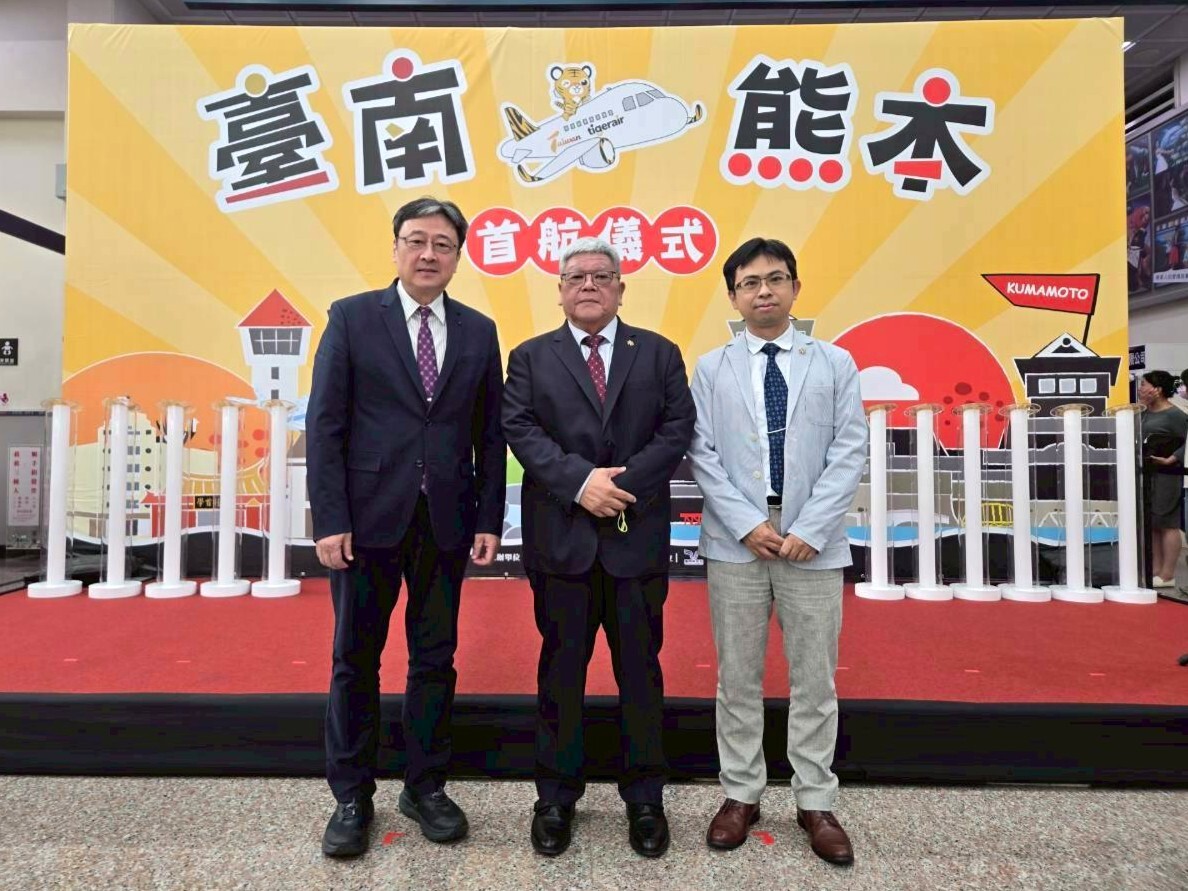 黃董事長、劉校長與張副校長一同出席虎航【台南-熊本】首航儀式